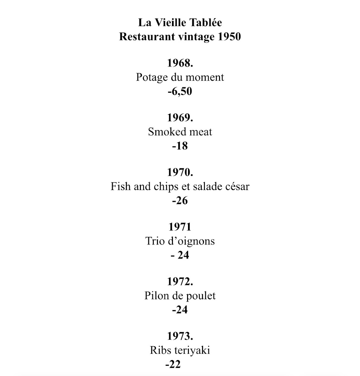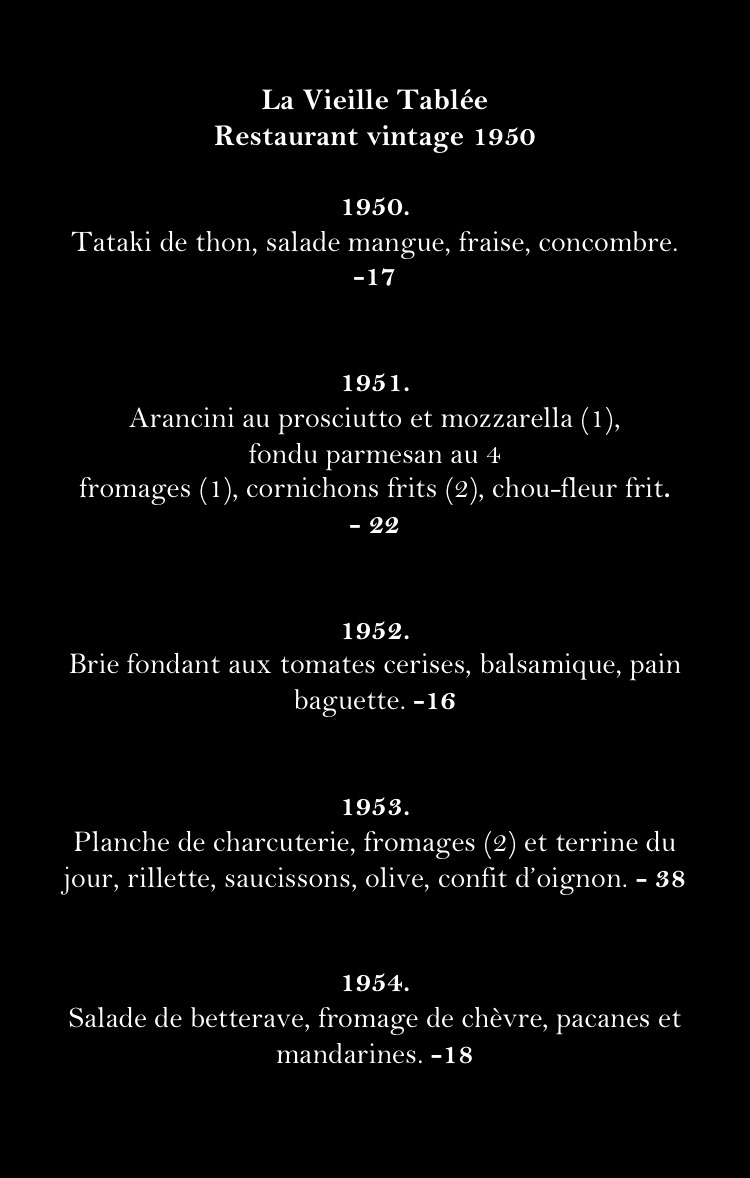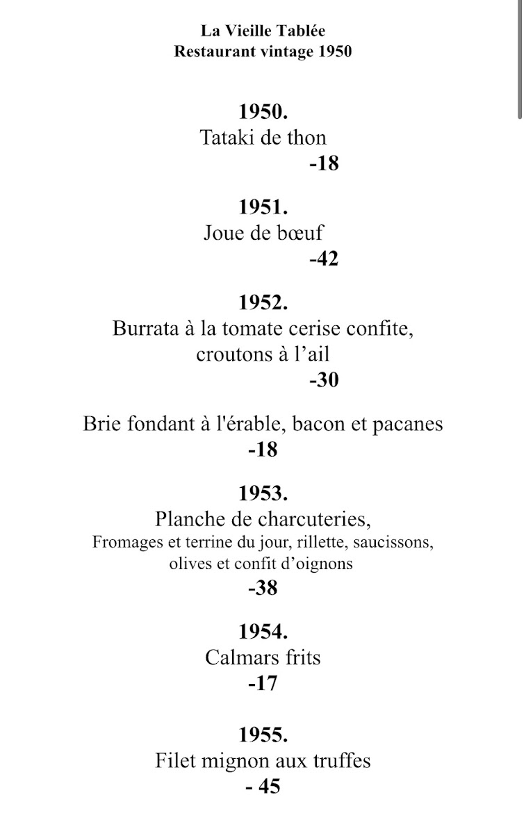 Restaurant La Vieille Tablée Vintage 1950 menu gallery